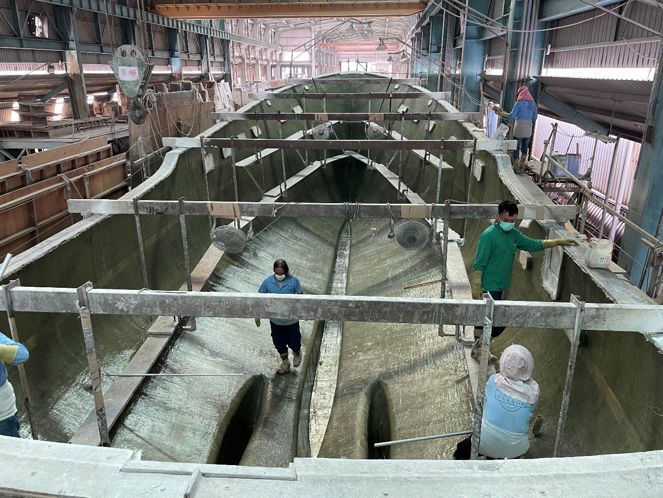 “Our employees typically work within the same factory and are assigned to different areas or departments based on their functions,” Lin says. “This enables convenient and efficient organization of workflow. We also promote cross-departmental collaboration and resource sharing to reduce costs and maximize personnel utilization. For example, in our company, employees in the varnish department also have the skills to perform FRP lamination and gelcoat repairs.”