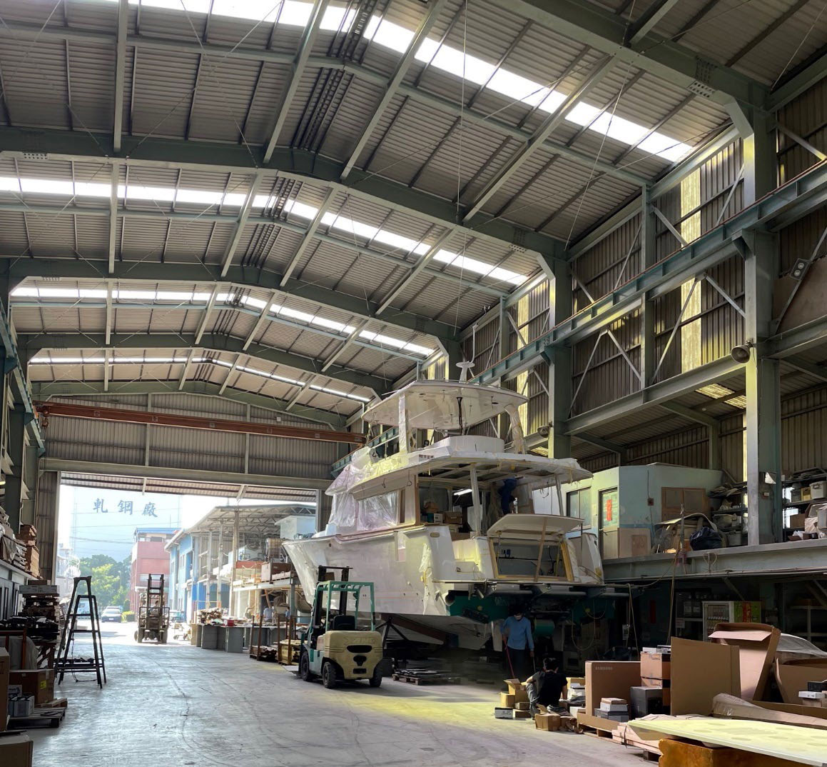 “Initially, our factory didn’t even have overhead cranes,” Jeff Lin says. “The installation of any equipment or major parts onto the boats had to rely on manual labor or separate crane services. The process of tooling was also different compared to now, where we use 3D software in conjunction with CNC cutting machines.”