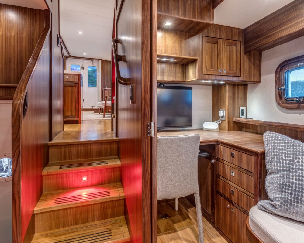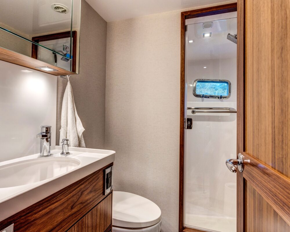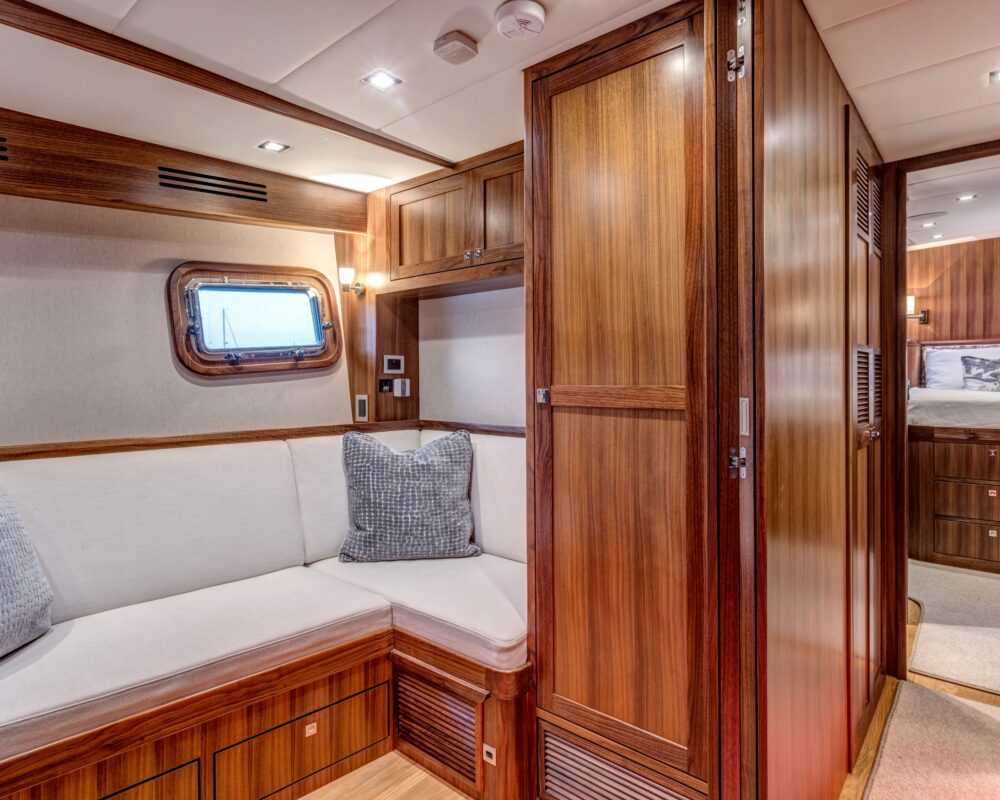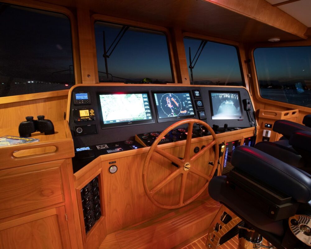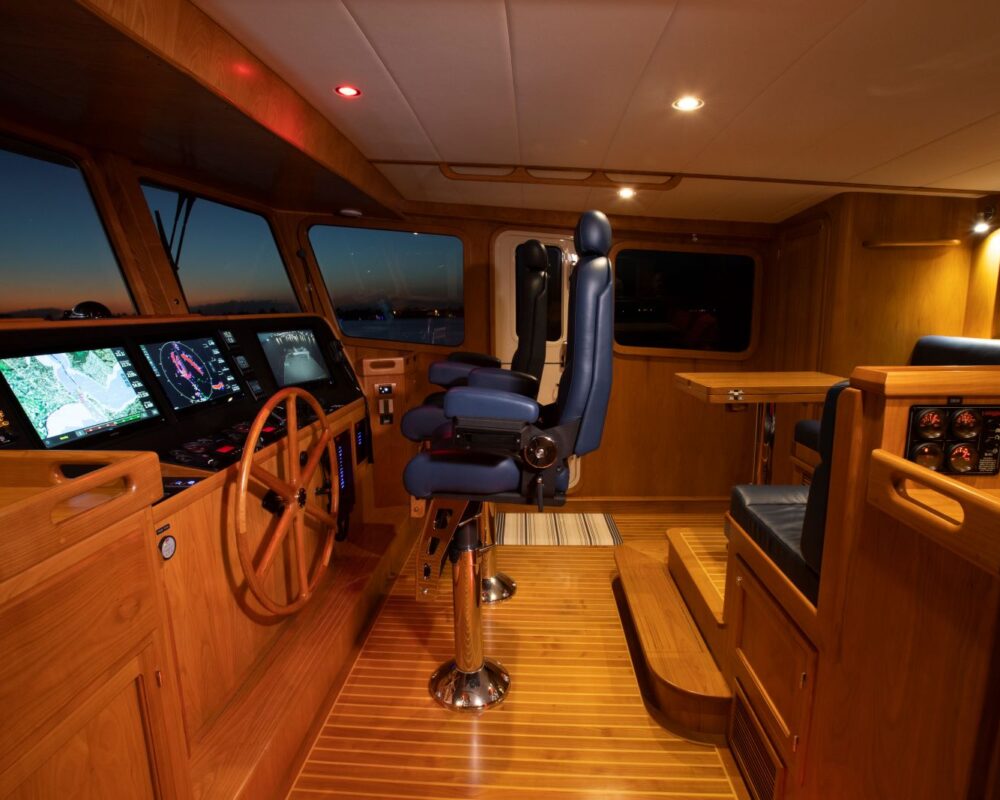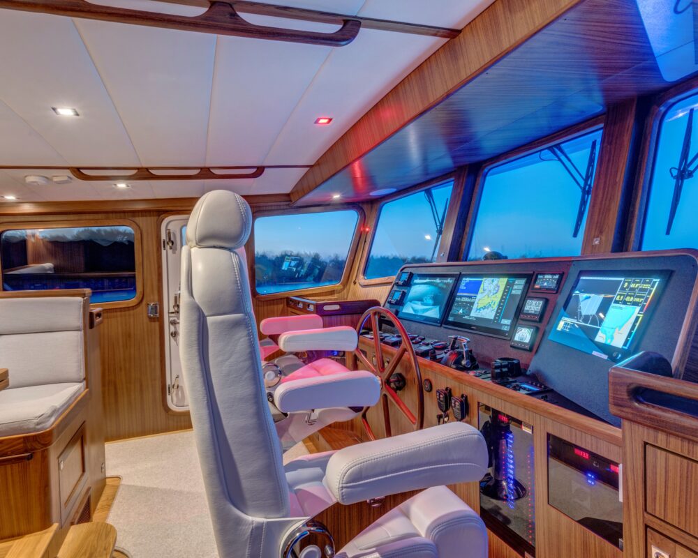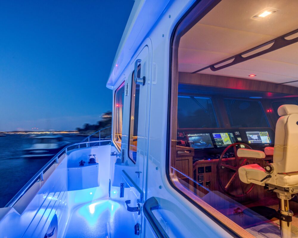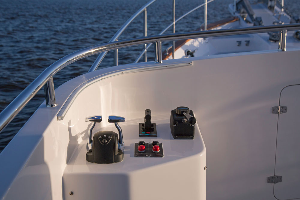 Even for the highly experienced cruiser, docking after a long passage in an unfamiliar area and, with the challenges of elements such as wind and current, can be a little stressful. Kadey-Krogen understands this and provides two wing stations on the Portuguese bridge, giving the helmsman optimal lines of sight while putting him in the ideal spot to assist with lines.