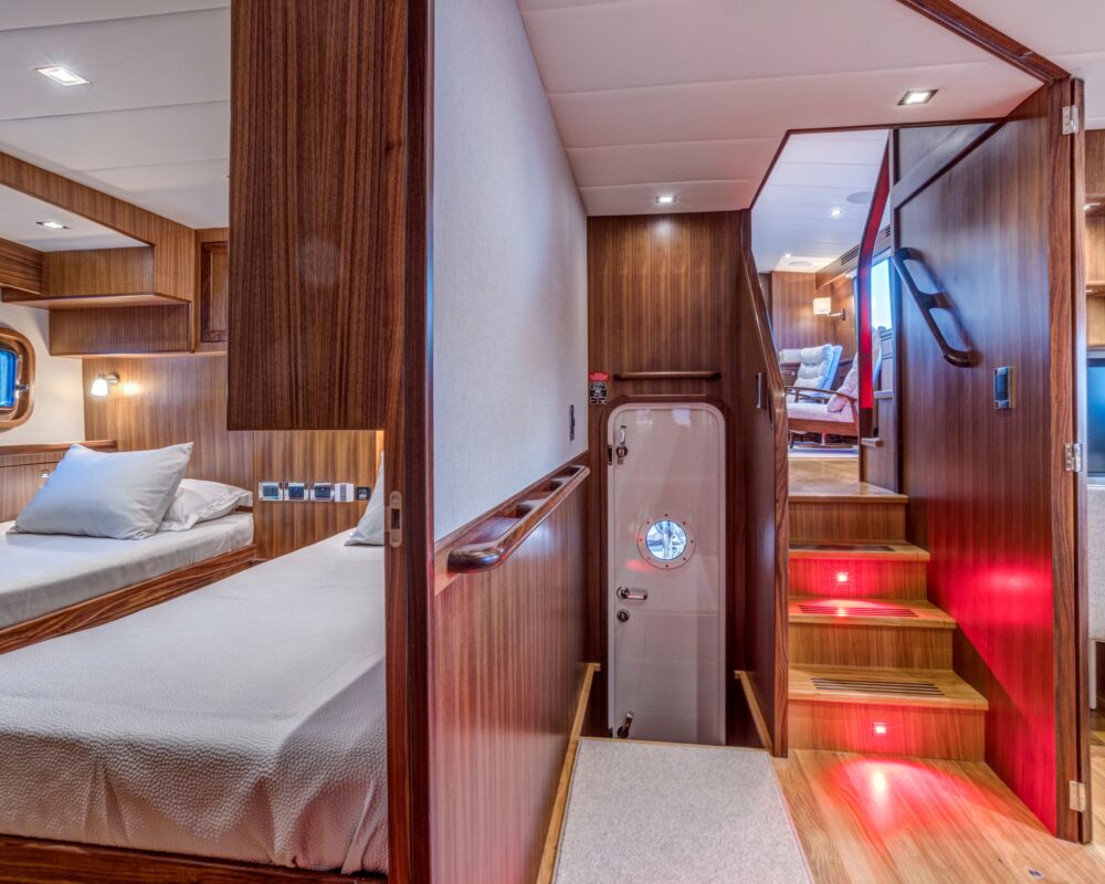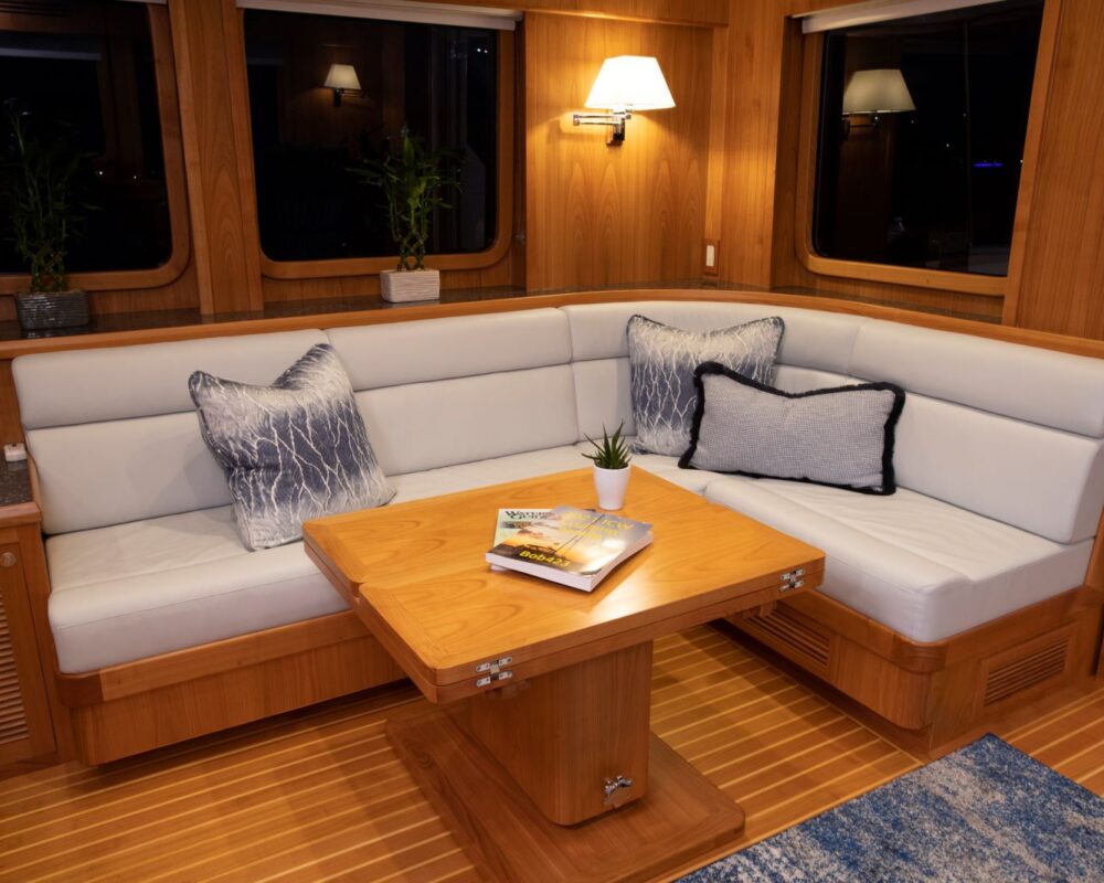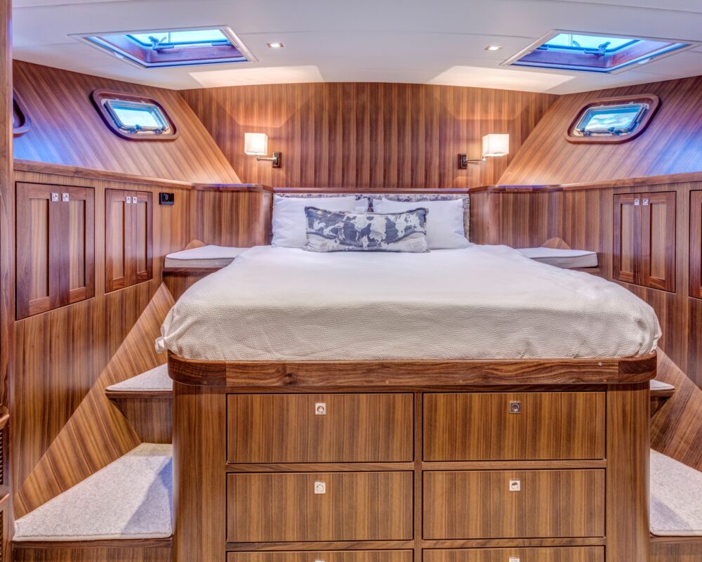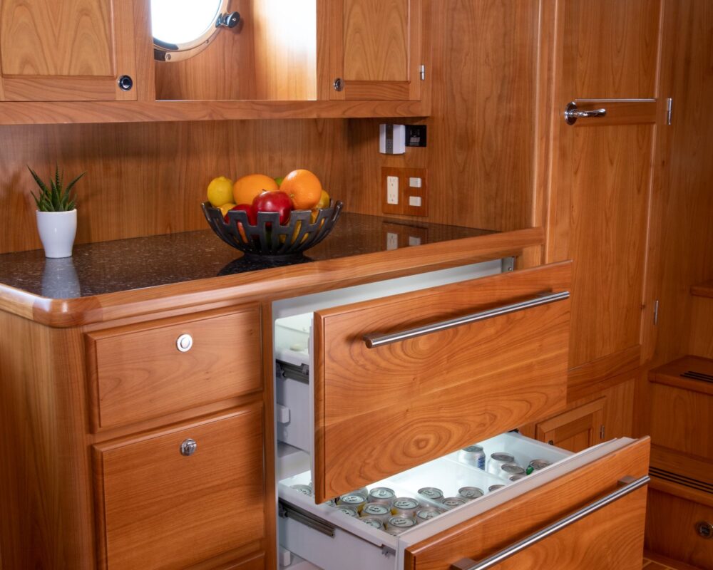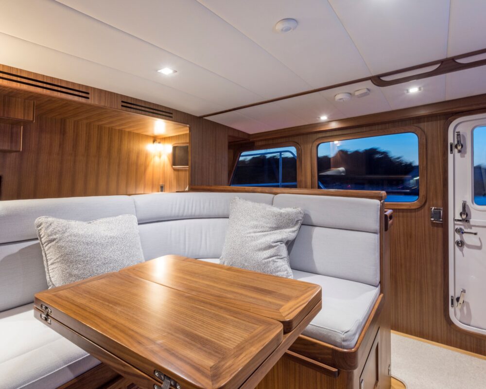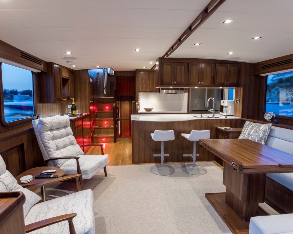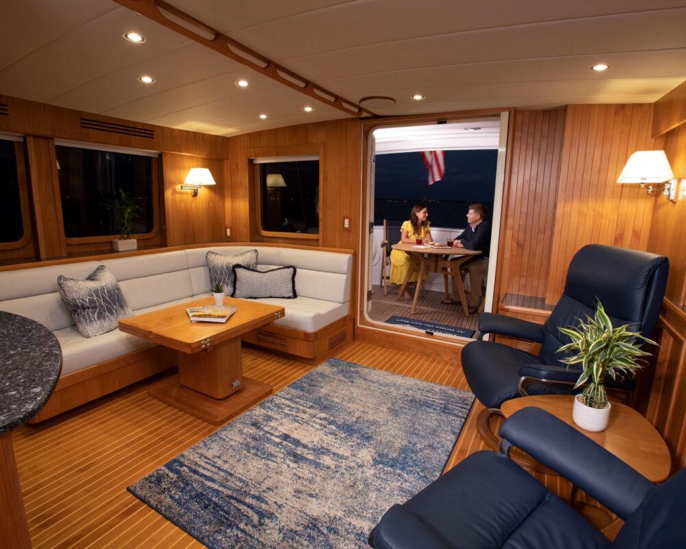 Even for the highly experienced cruiser, docking after a long passage in an unfamiliar area and, with the challenges of elements such as wind and current, can be a little stressful. Kadey-Krogen understands this and provides two wing stations on the Portuguese bridge, giving the helmsman optimal lines of sight while putting him in the ideal spot to assist with lines.