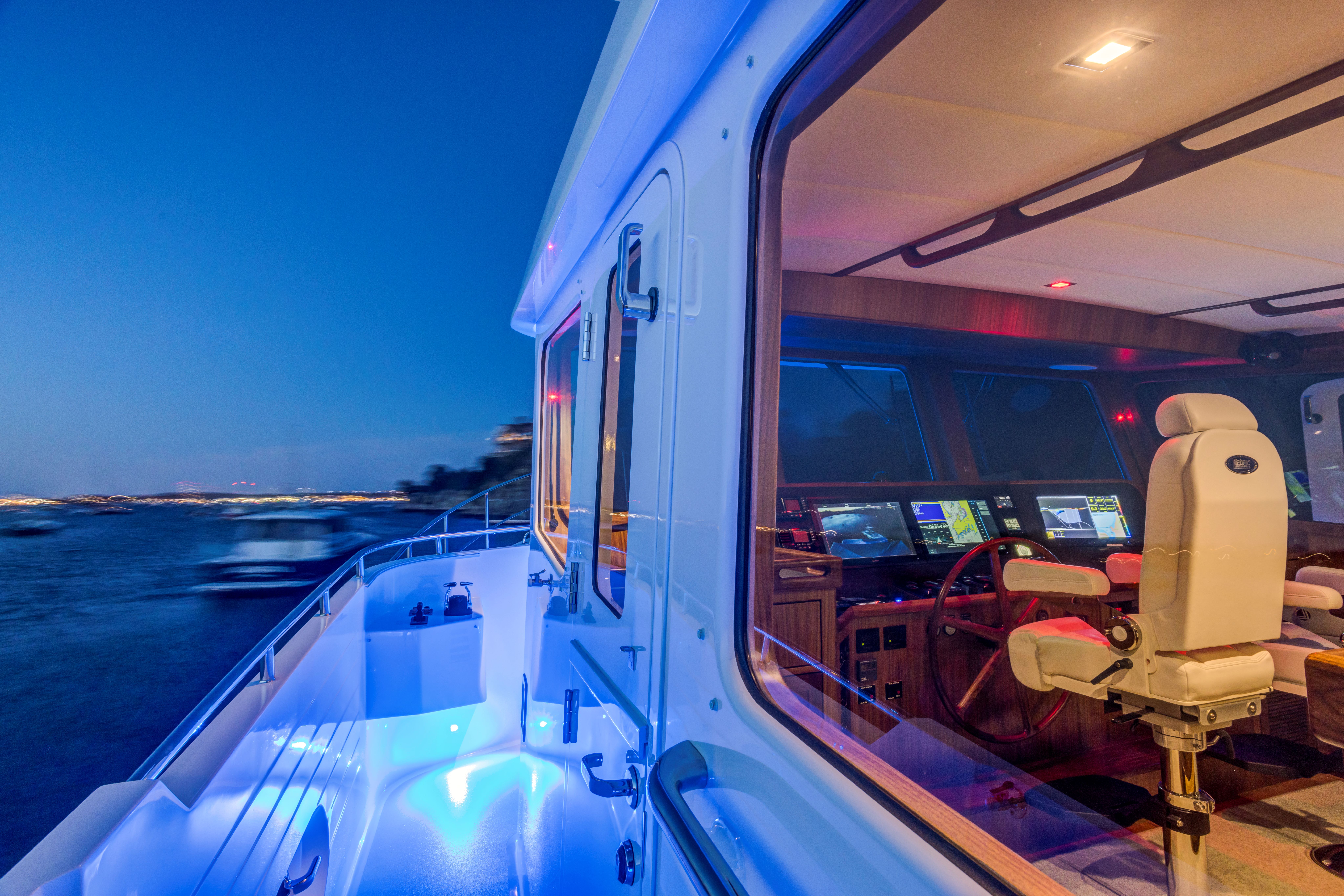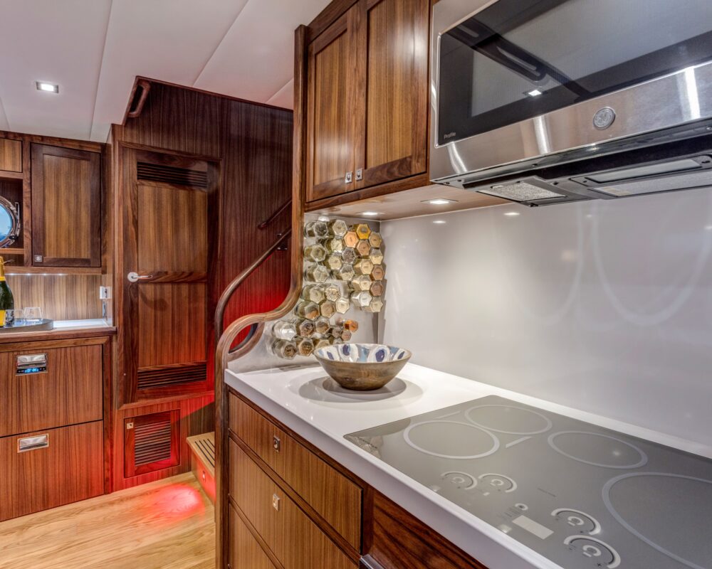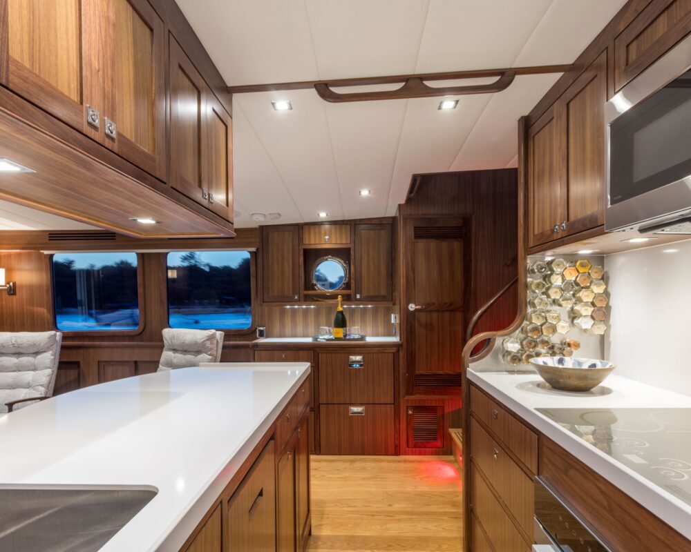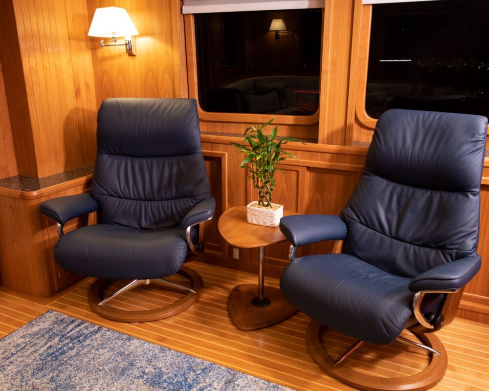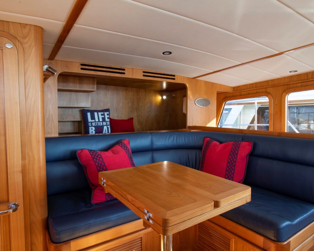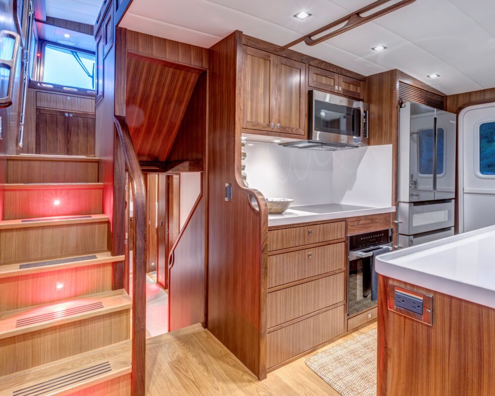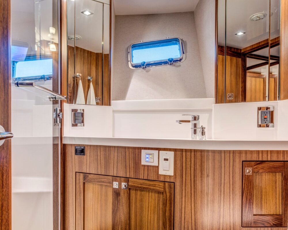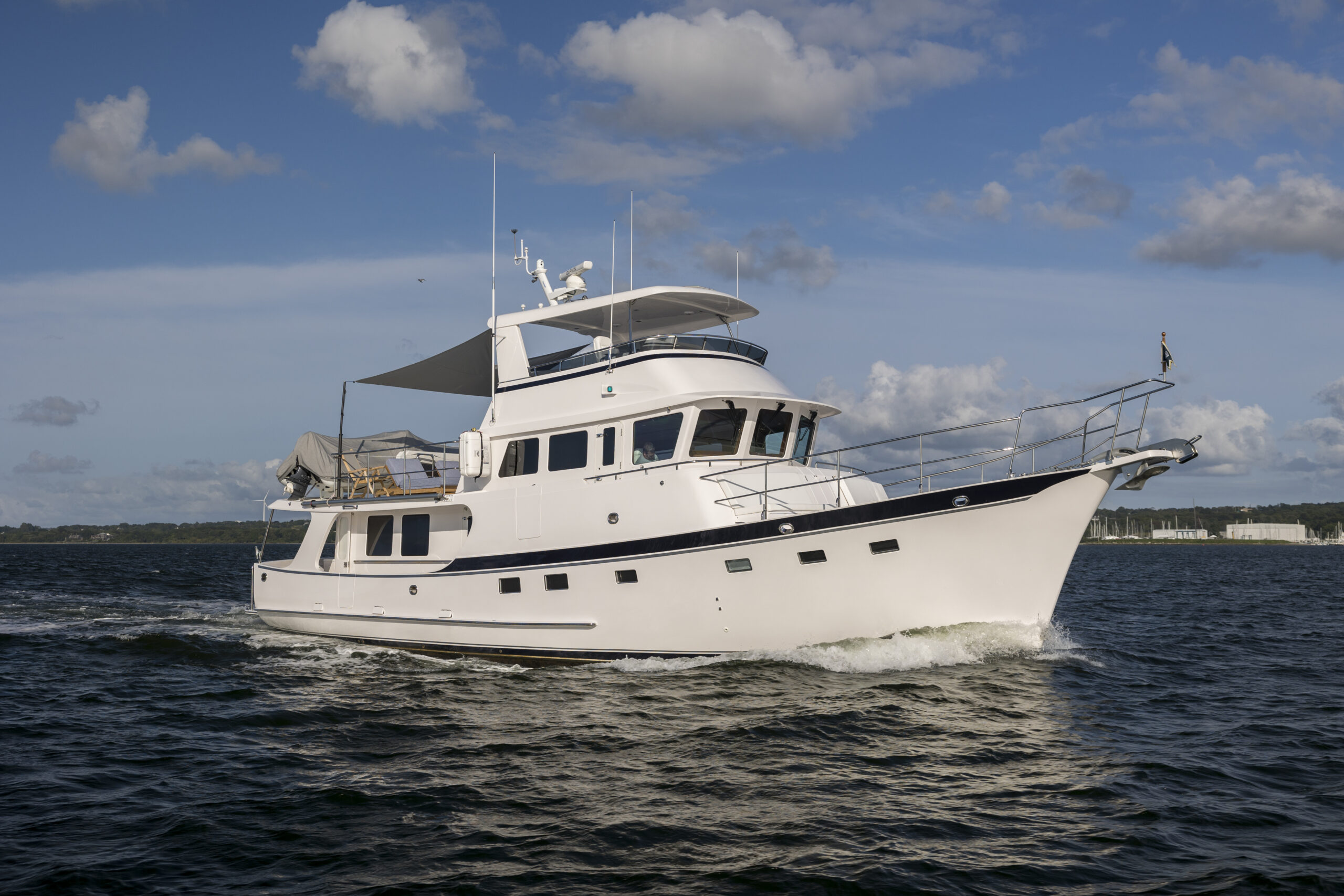 Even for the highly experienced cruiser, docking after a long passage in an unfamiliar area and, with the challenges of elements such as wind and current, can be a little stressful. Kadey-Krogen understands this and provides two wing stations on the Portuguese bridge, giving the helmsman optimal lines of sight while putting him in the ideal spot to assist with lines.