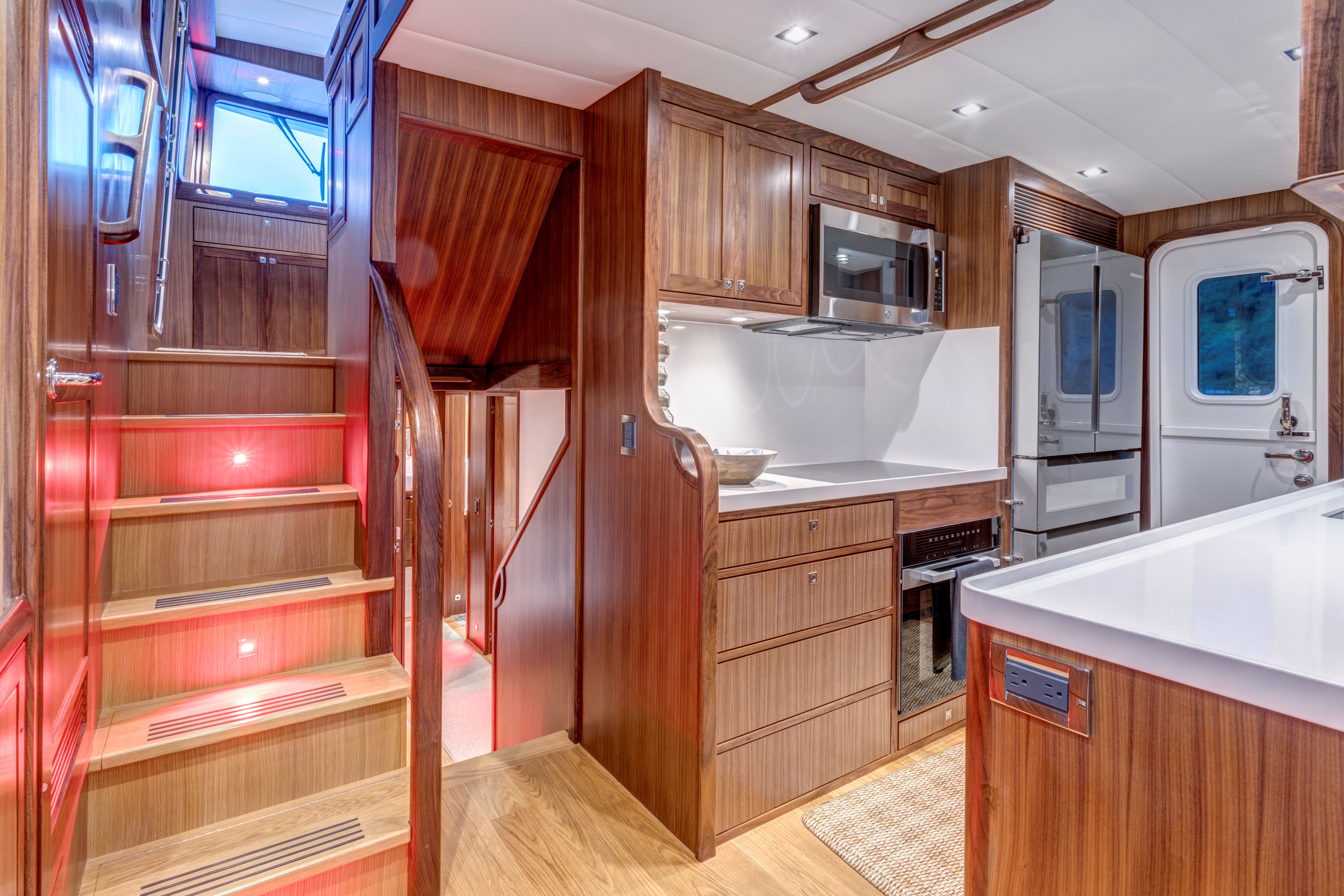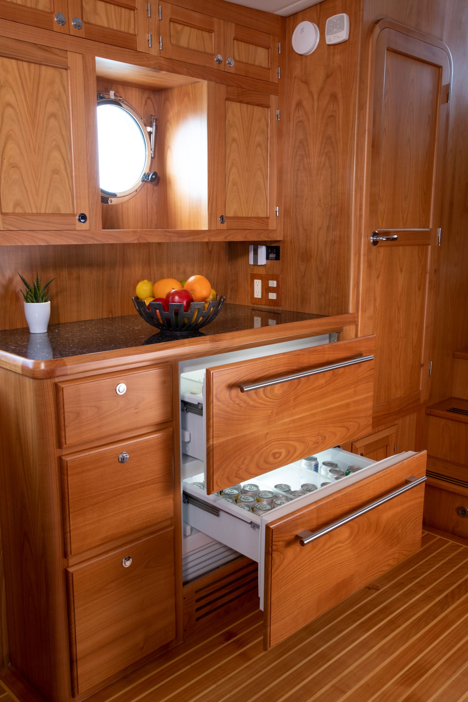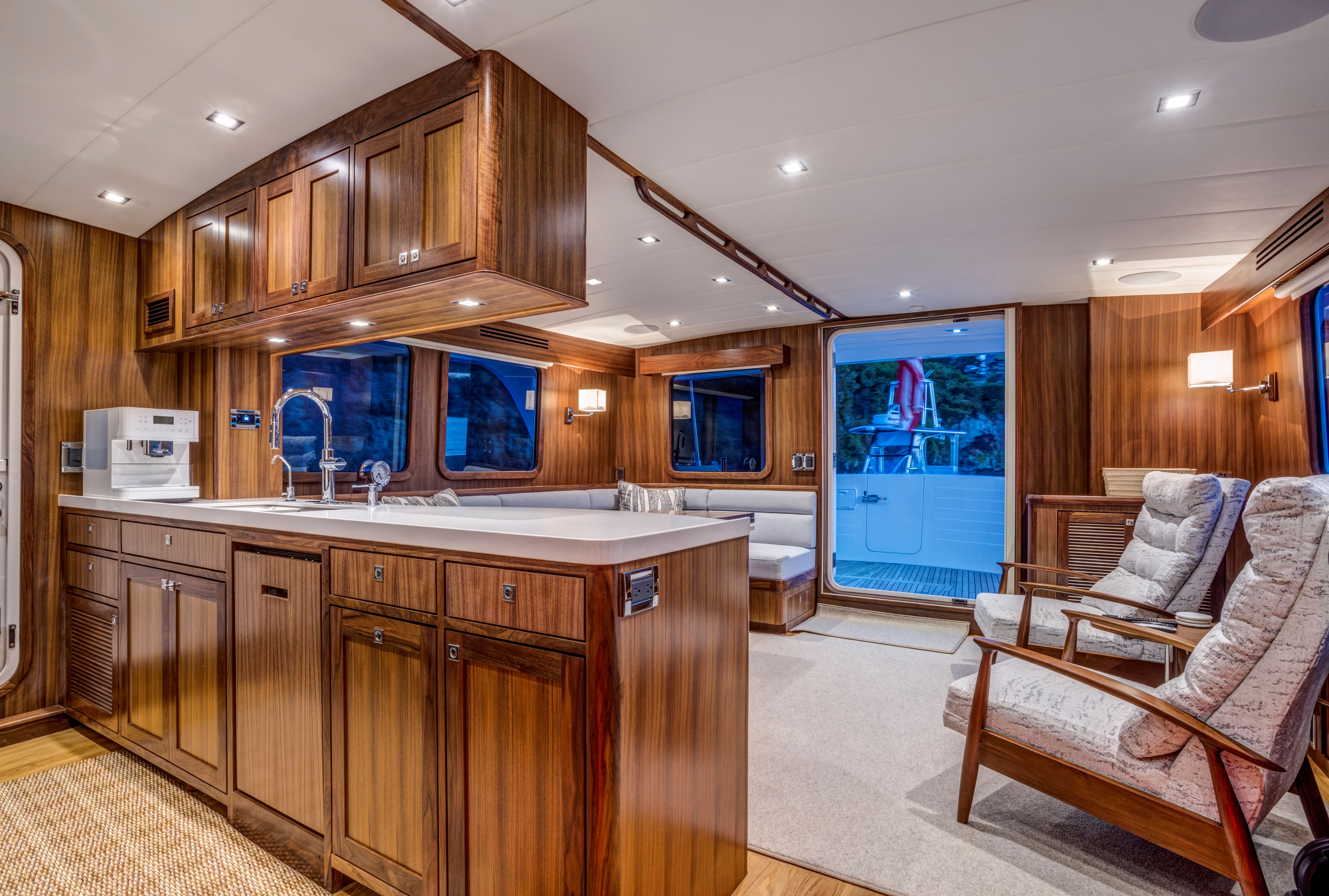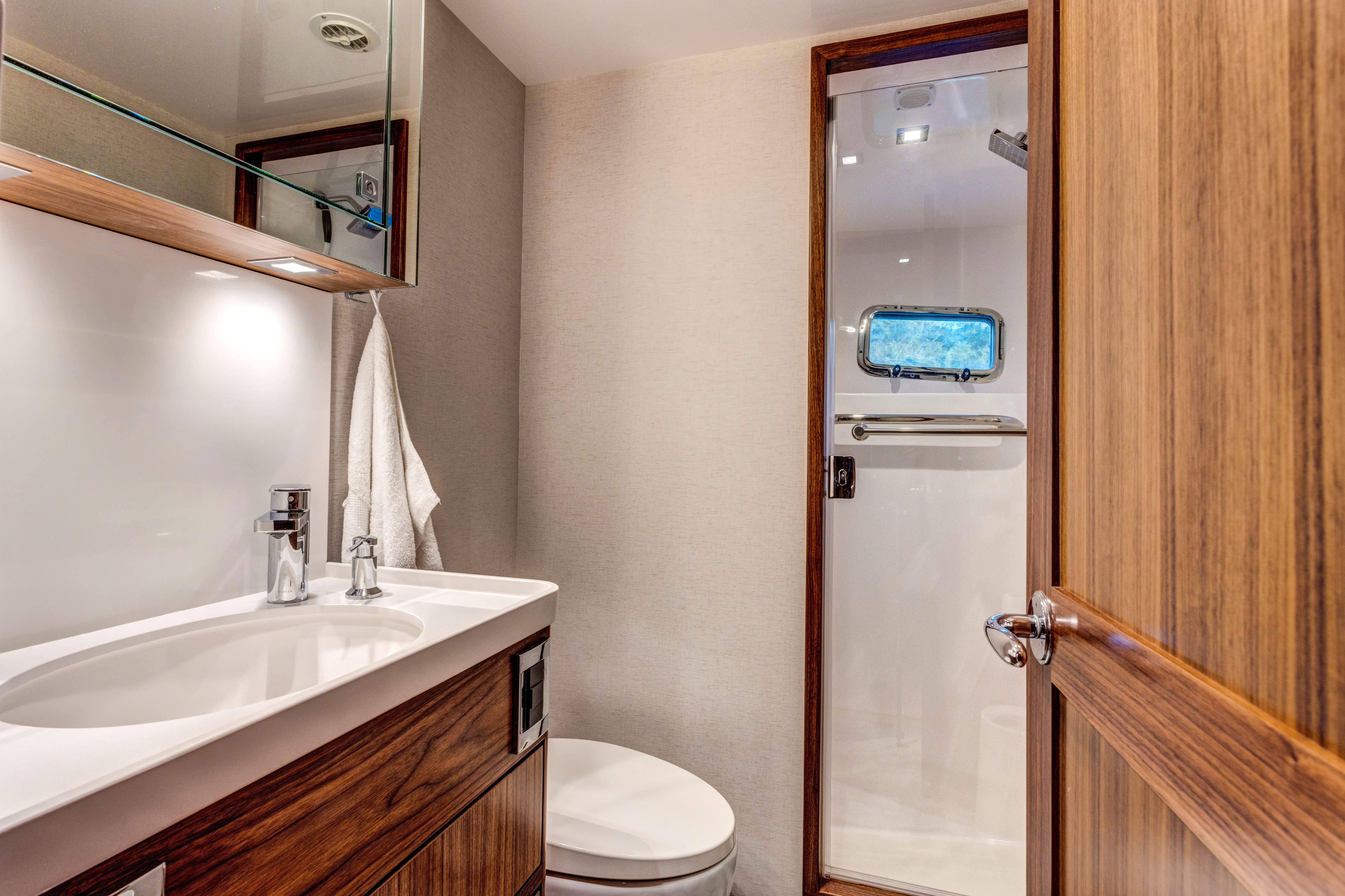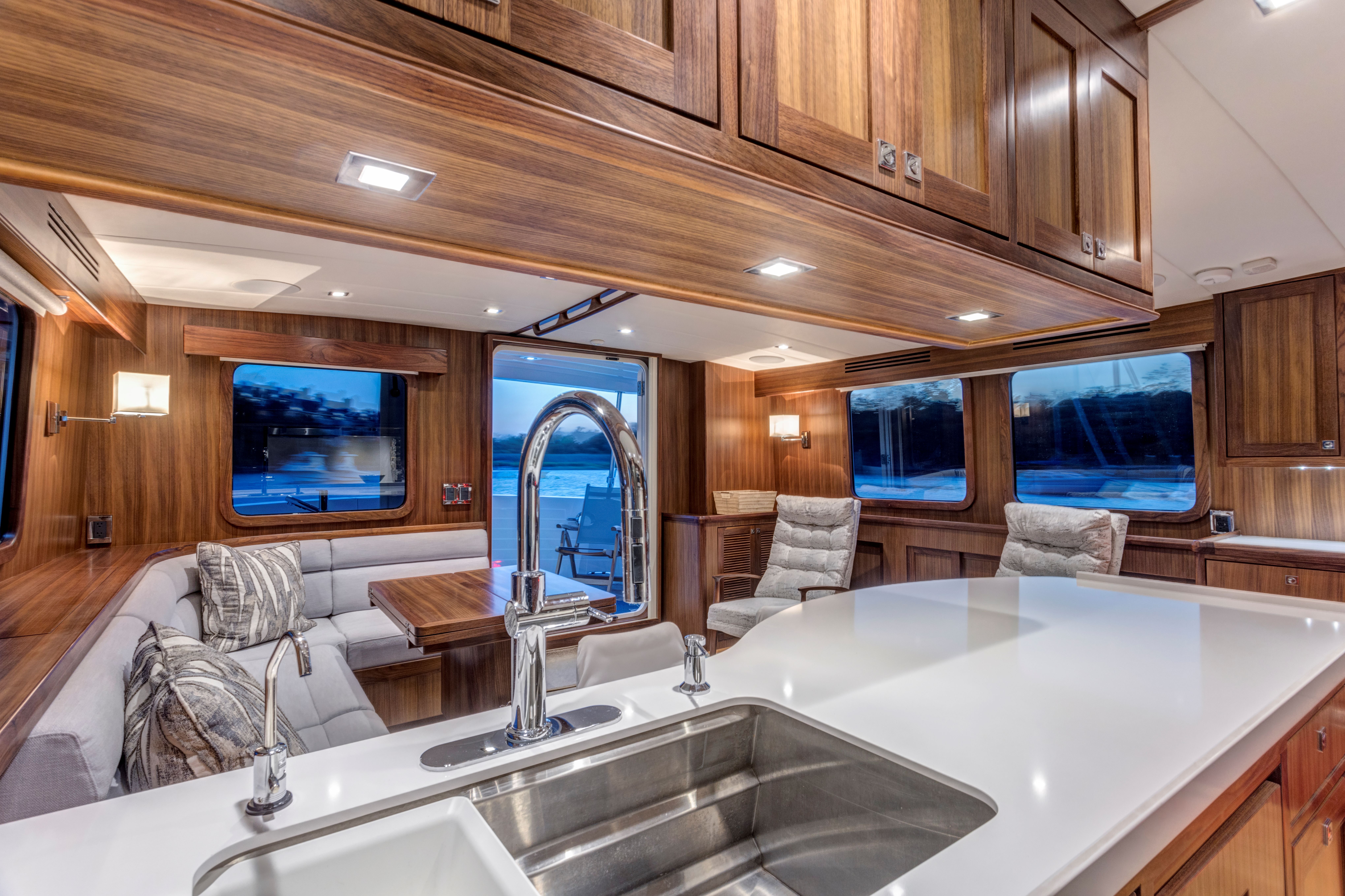 Even for the highly experienced cruiser, docking after a long passage in an unfamiliar area and, with the challenges of elements such as wind and current, can be a little stressful. Kadey-Krogen understands this and provides two wing stations on the Portuguese bridge, giving the helmsman optimal lines of sight while putting him in the ideal spot to assist with lines.