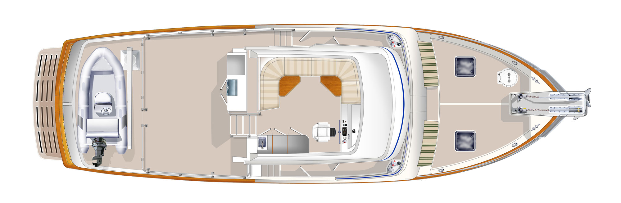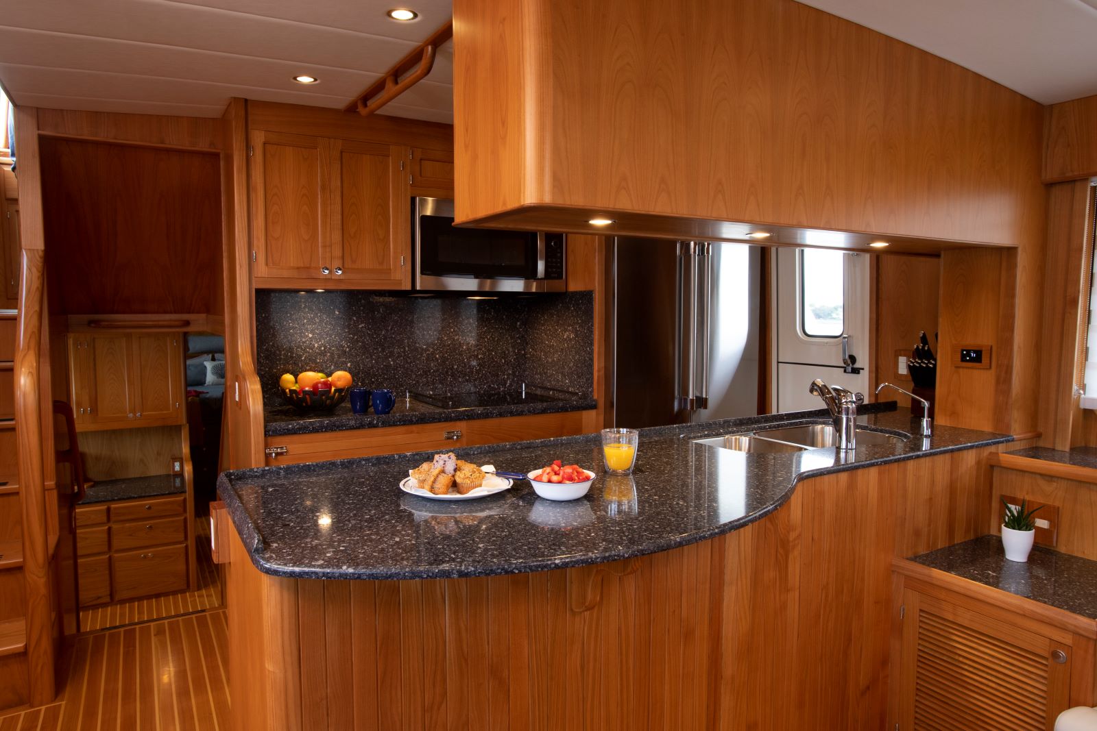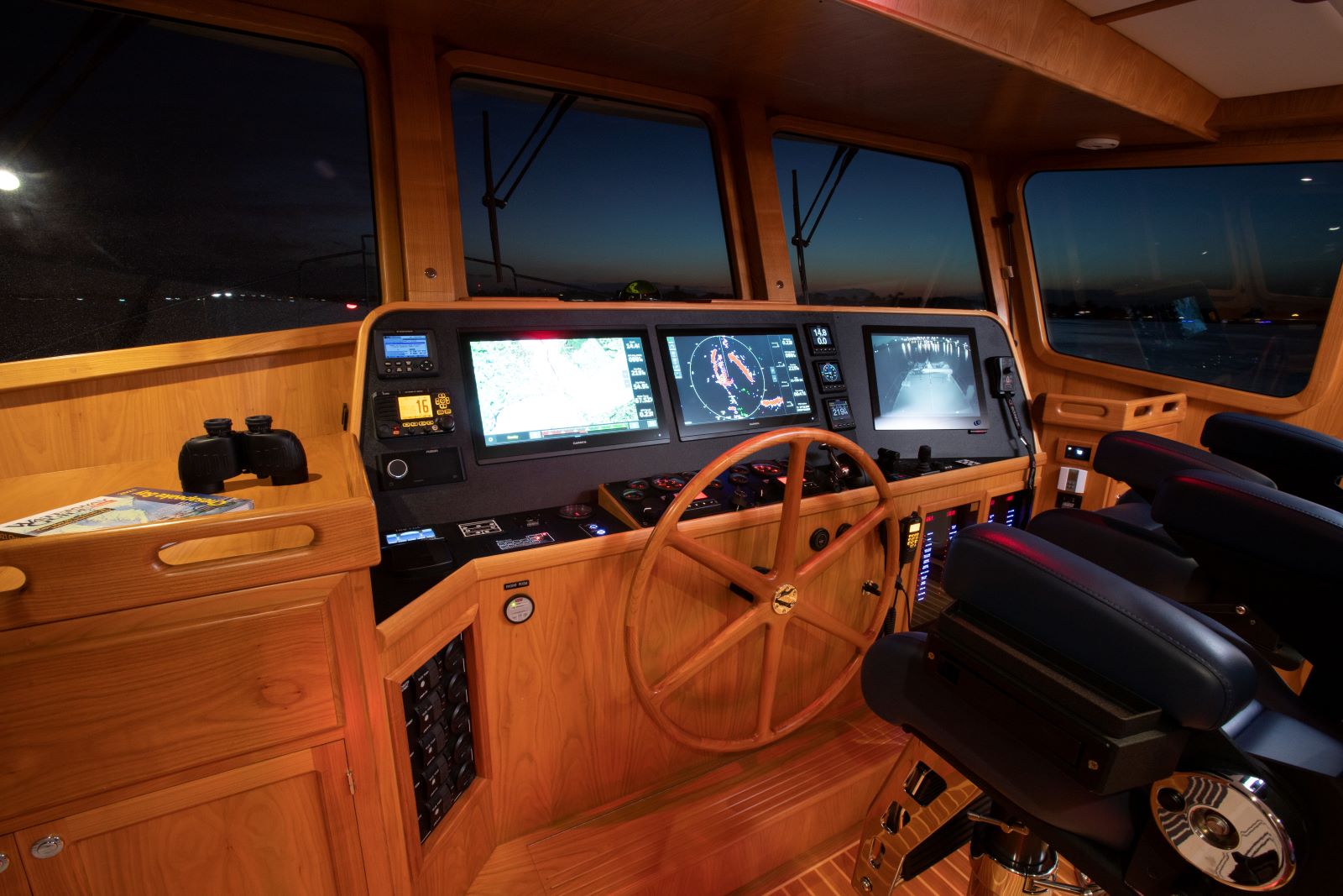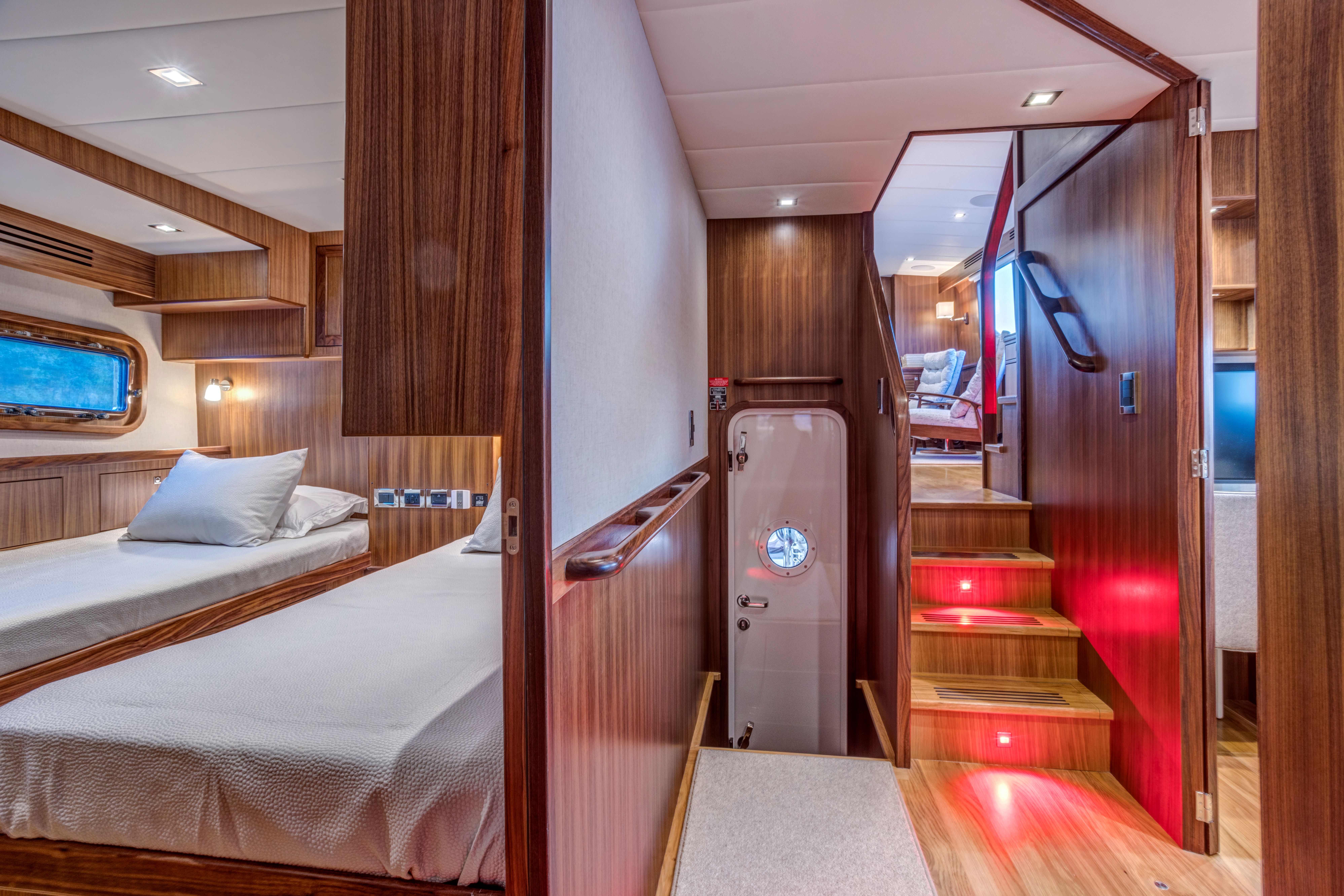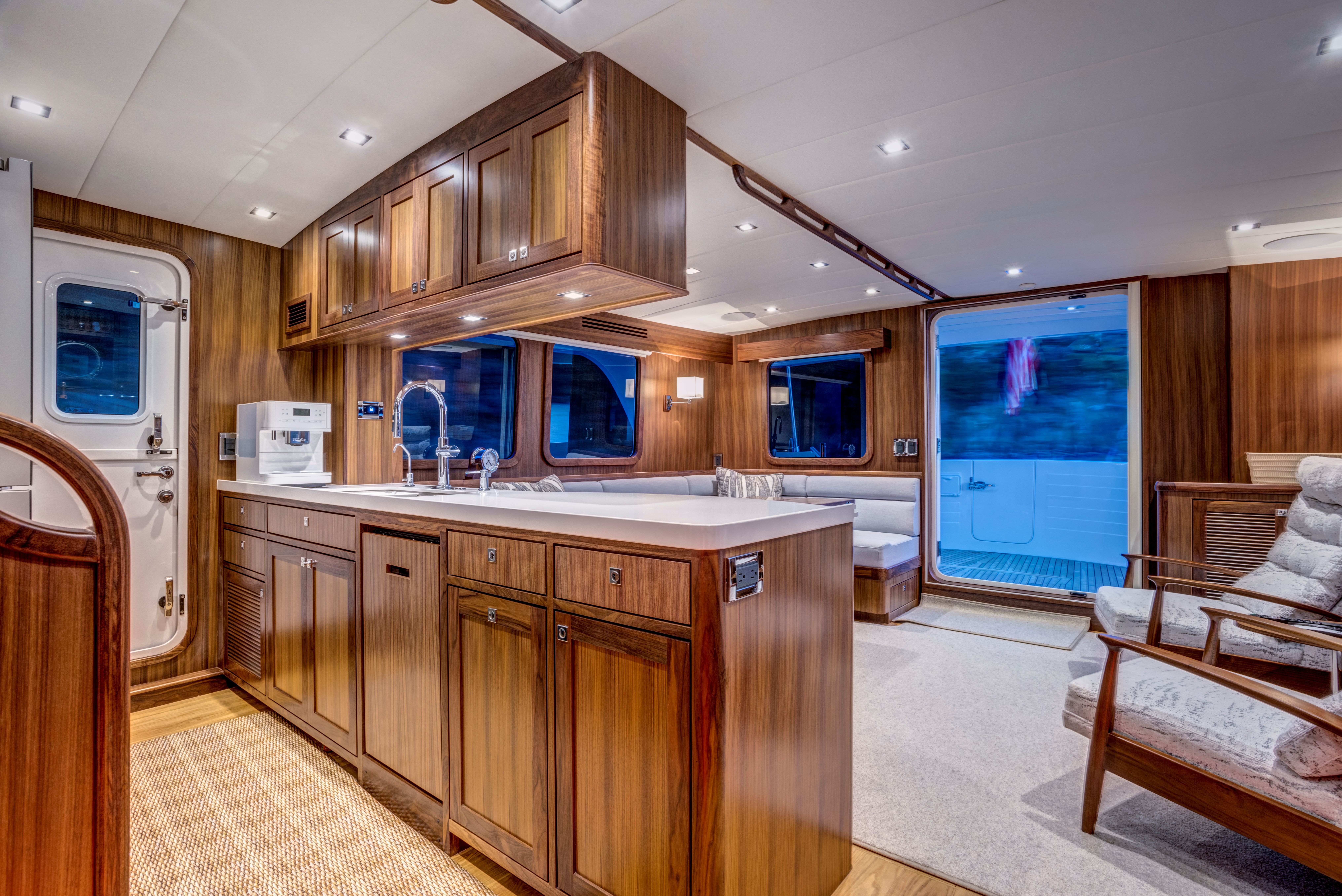 Even for the highly experienced cruiser, docking after a long passage in an unfamiliar area and, with the challenges of elements such as wind and current, can be a little stressful. Kadey-Krogen understands this and provides two wing stations on the Portuguese bridge, giving the helmsman optimal lines of sight while putting him in the ideal spot to assist with lines.