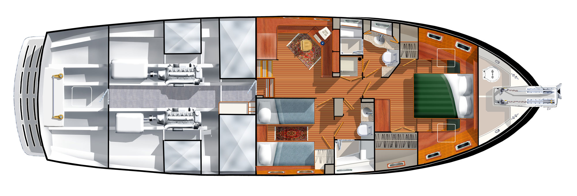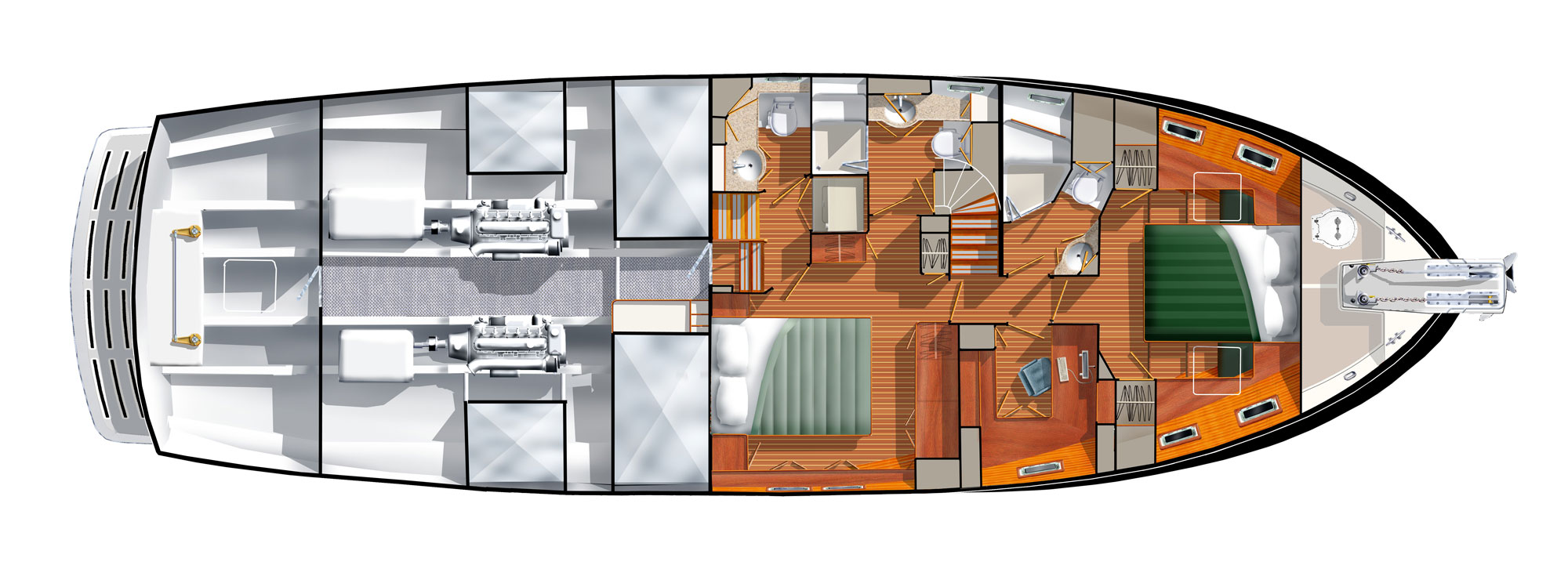 Designing a yacht intended to explore the world’s oceans is no easy feat. Every seasoned yachtsman will eventually be told that “all boats are a compromise.” At Kadey-Krogen, we view that opinion as simply giving up and not trying hard enough. For more than 45 years we have proven that it is possible to have an efficient hull design, extreme comfort while under passage and in port, all with a design that is pleasing to the eye. Coupling all of these elements together is certainly not easy, especially when you choose to build each and every 58 without compromise.