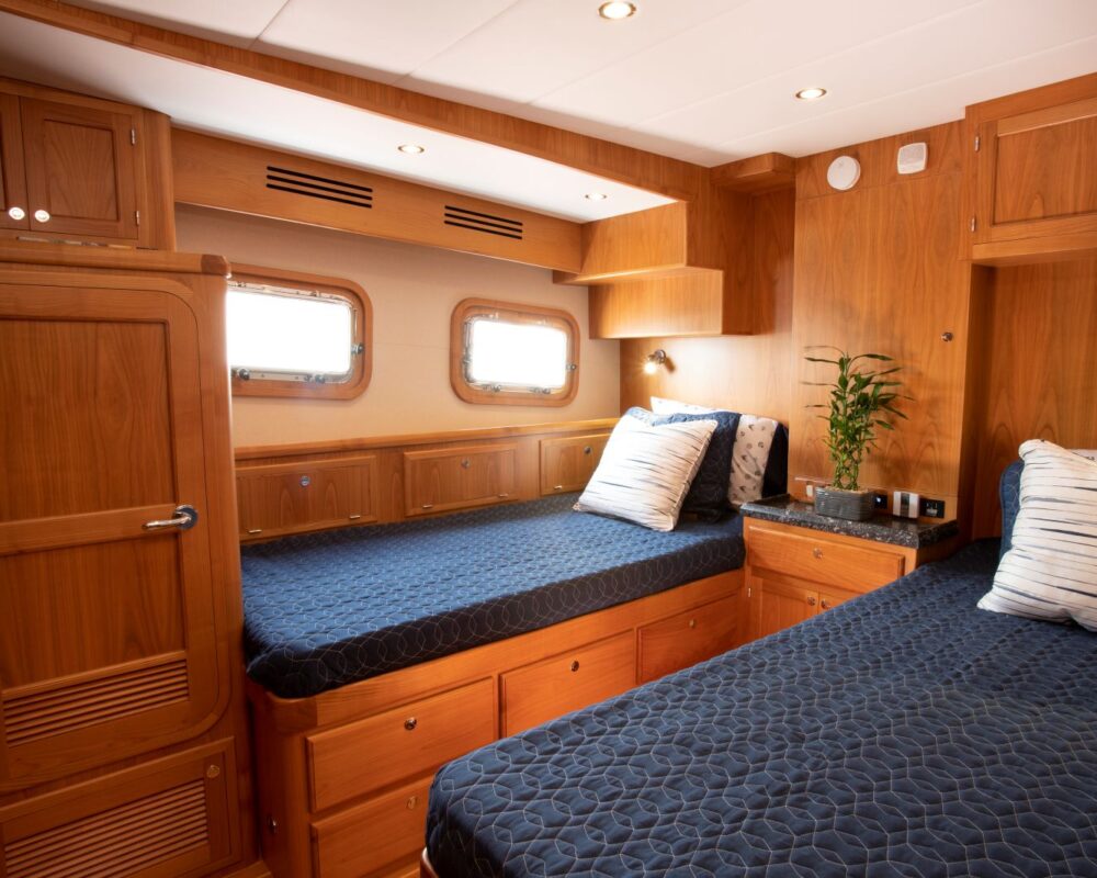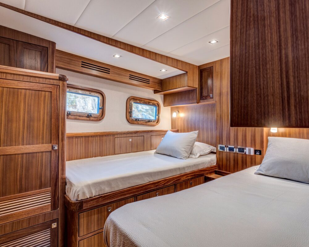 Furthermore, the weight distribution complemented by the underbody shape eliminates any tendency for the Krogen 58 to produce any type of pitching motion. A better and easier motion through the seas not only means a less tired crew, but it also results in a more efficient passage.