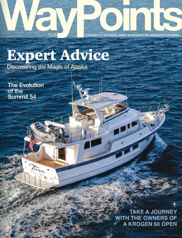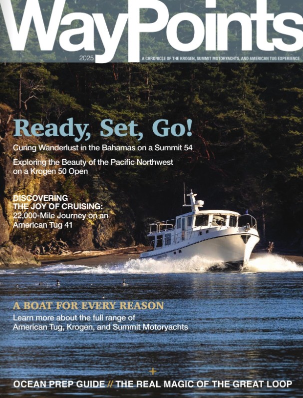 Welcome to Waypoints, our annual magazine celebrating the owners, boats, and adventures of the Kadey-Krogen Group community. We truly believe that Krogen, American Tug, and Summit Motoryacht owners are the key ingredient for what makes this company so special. It’s your adventures, your love of our boats, and the community that you’ve built that goes beyond the models we create.